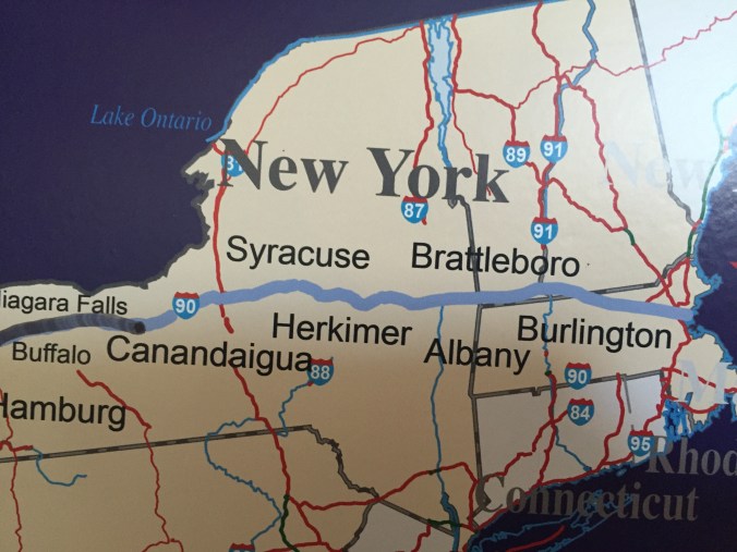 How was that exit out of Syracuse you ask. Well we ran a slalom coarse around pot holes, giant road cracks and mounds of decades of road repairs. These roads are OLD and obviously the winters take a toll. But the pot holes are second to no others. We are talking the size of an abyss. I looked up abyss in the dictionary and it’s defined as, a deep immeasurable space or cavity, a vast chasm. It should also be defined as a typical pothole in Syracuse NY.