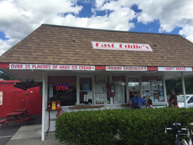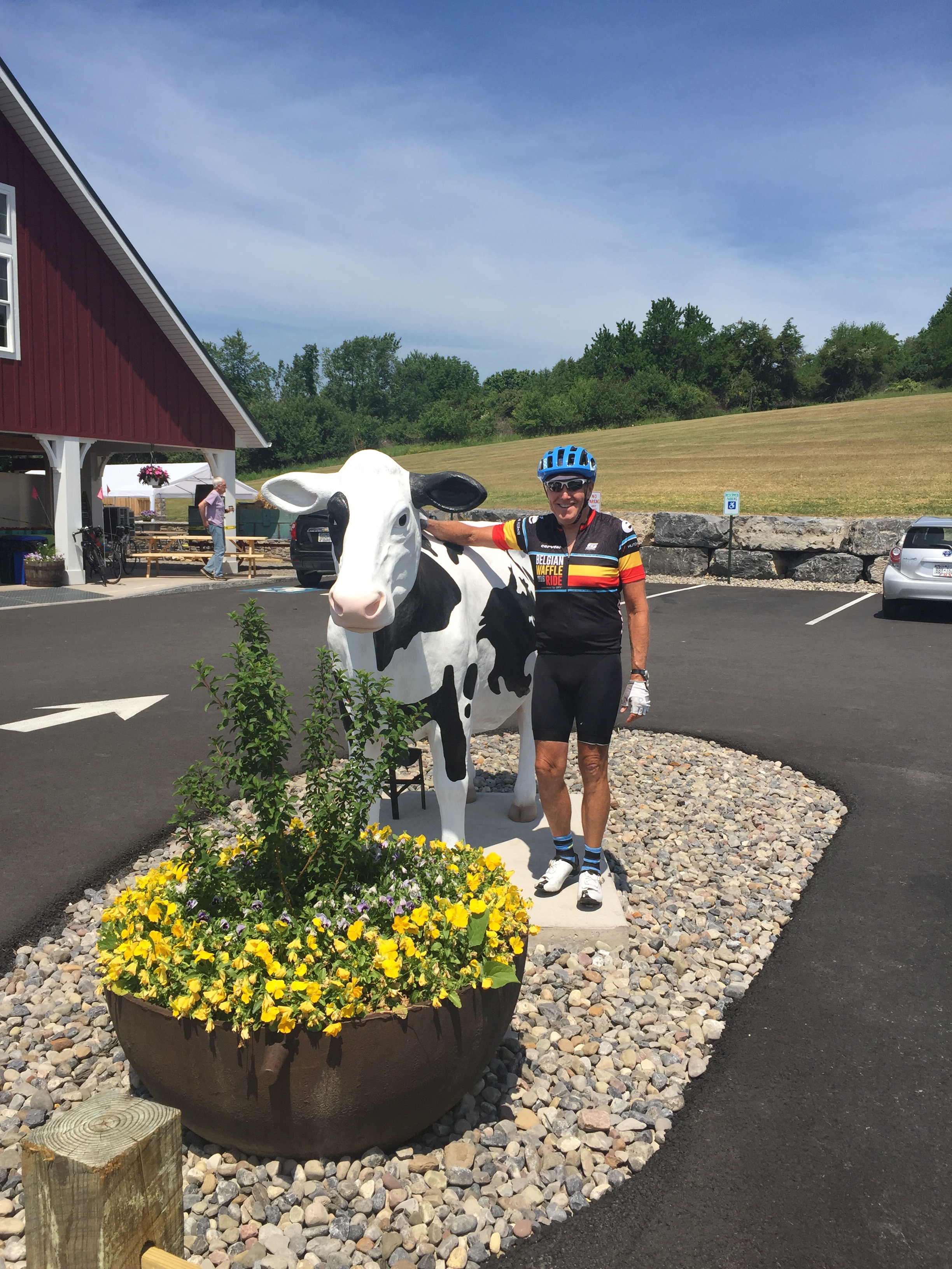 Our best stop was at a cool coffee ice cream kind of barn place. The owners wanted to build a ice cream stand but they built a really nice market kind of place. After waiting about 40 minutes for 4 lattes we figured the ice cream was a better bet. So we hung and again once we left the oven temps increased a lot. See photos. From that point all the way into Syracuse it cooked and hurt.