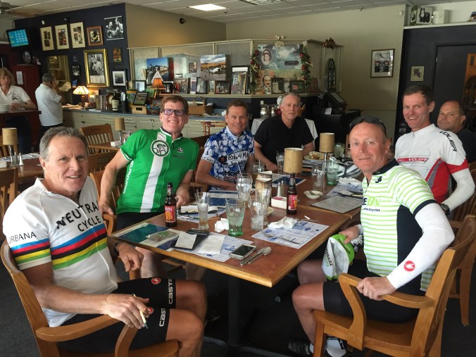 Soon after we headed away from the shoreline, the traffic rudeness began and at one point we got cut off 3 times within about 3 minutes. One brainless driver backed out of her driveway at a snails pace which almost caused a pile up. I waved and said hello to a large man sitting waiting for us with a look of disgust. His window was down allowing his oversized arm to sit motionless as he gave me his best stink eye. So I waved again hoping he’d realize his face reflected his distain for life. So much for trying to get even a lifted one finger howdy. Nothing, just a blank stare, not even a nod. Good bye Mr happy. Then he pulled out behind us a guns the SUV that’s never seen a car wash. Maybe he didn’t like bike riders using his road.