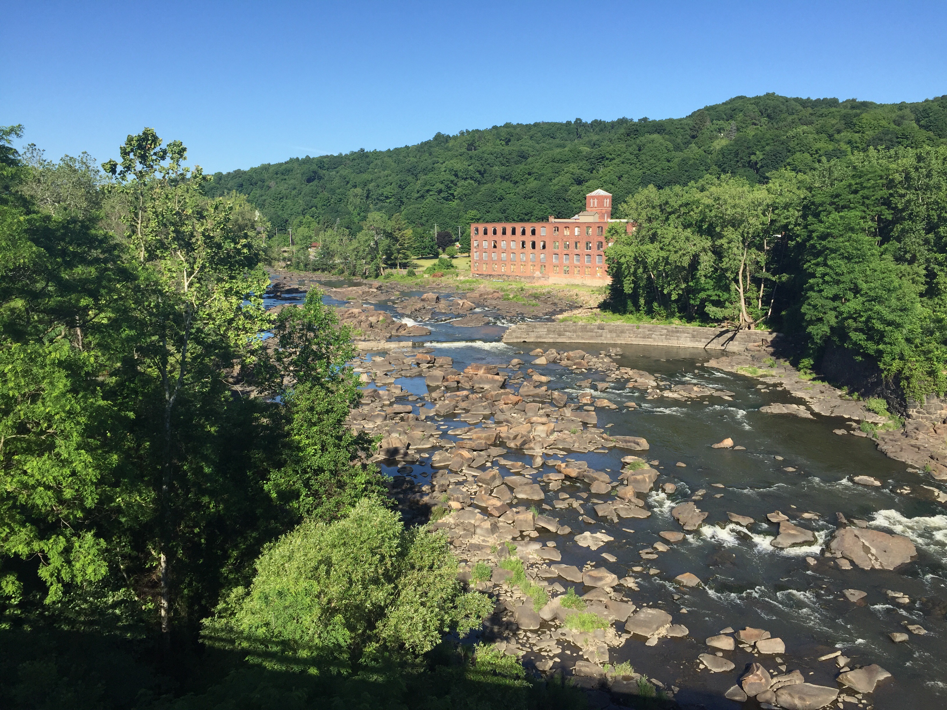 Prior to reaching the mine fields of Schenectady, we went thru Little Falls. There were saw our first locks. I took a few photos and in one you’ll see an old abandon factory with all the windows broken out. We saw a lot of this as well as many small businesses closed up. We even noticed businesses that look to be up and running but no one around. No cars and or people. It’s kind of strange. Anyway I believe there are around 37 of these Locks, give or take. There are 3 rivers running thru, the Mohawk, Hudson, and Schoharie. Our bike route kept us fairly parallel to a river and railroad a majority of today’s 80 mile total.
