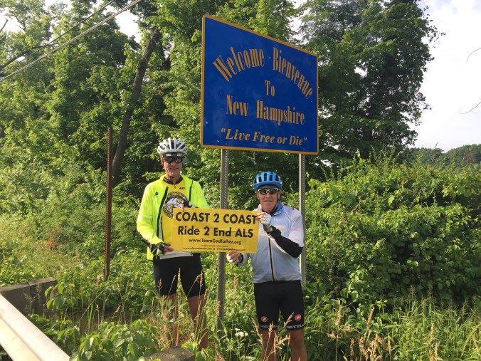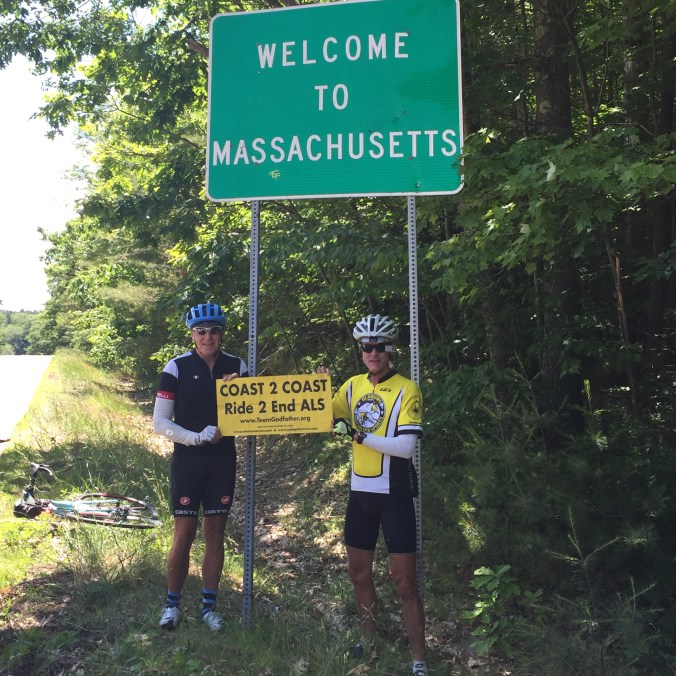 Jim and I rode up to Andews house and had an extremely meaningful visit. Both of us fought back tears, but it brought meaning to our journey. Kathleen, Andrews wife couldn’t have been sweeter. We also had the pleasure of meeting Andrews sister and husband. We shared stories about the ride as well as about ALS. Andrew has lost many family members as well to ALS. It was a solemn and humbling visit. Our message was to let Andrew and Kathleen know that there are people, foundations, and laboratories out there working to find a cure. They thanked us for visiting and I thanked them for adding meaning to our journey. I’ll remember this visit always. God bless you Andrew.