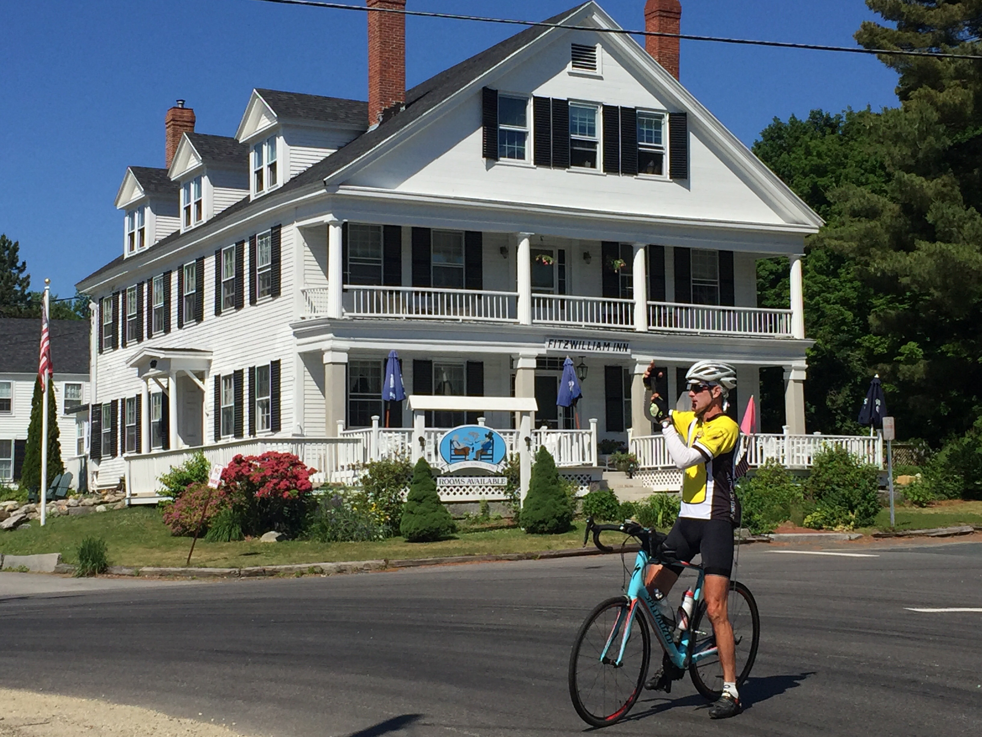 So, ok let’s go back to days 47 & 48. We left Brattleboro Vt all happy and somewhat giddy. That day would be a first, a 2 state line crossing day. The New Hampshire state line came almost immediately like maybe 4 miles outside of Brattleboro Vt. We stopped on the old narrow bridge to take pictures of the Connecticut River which divides these 2 Yankee states. I was happy to say farewell to the crazed and aggressive drivers of Vermont. We had already gotten some mean stink eye back at the main intersection while leaving agroville. So back on the bridge the chairman of farewells decides to pass us rather than slow and let us ride off this bridge. His idea of have a nice day is to pass my left elbow by, I swear maybe within an INCH ! While he guns his way too cool econo van. That was the single closest call yet and I couldn’t wait to get into friendly territory. I was terrified riding through this region unfortunately. We did ride into some spectacular empty roads for a long long time thru New Hampshire. We had a 93 mile day with something like 6,000 feet of climbing. I renamed this state New Hillshire. I enjoyed the climbs a ton as many of the roads were just resurfaced and perfect for enjoying the shear fun of cycling. Thanks New Hillshire, you’ve restored my faith in the beauty of bicycle touring.