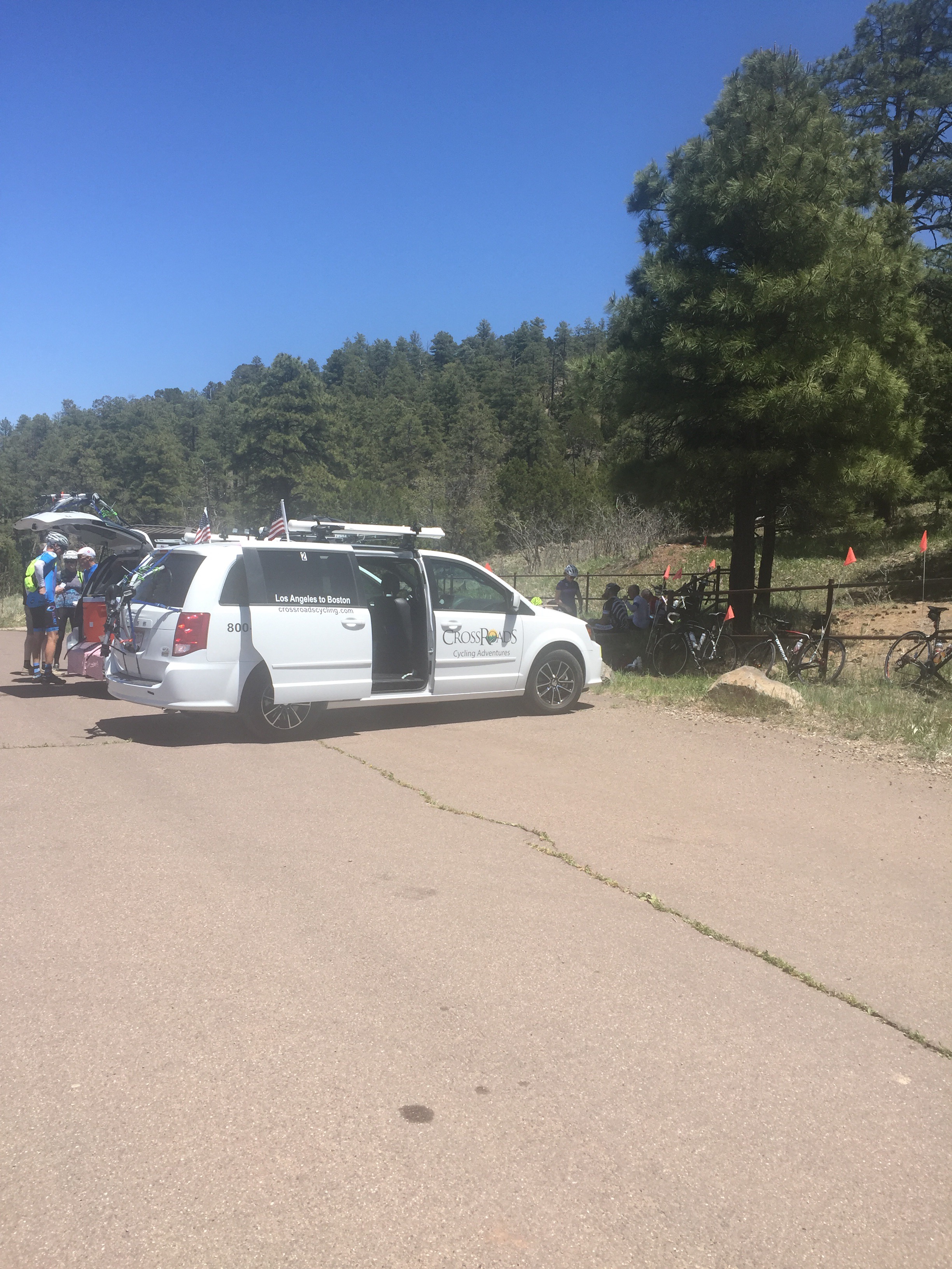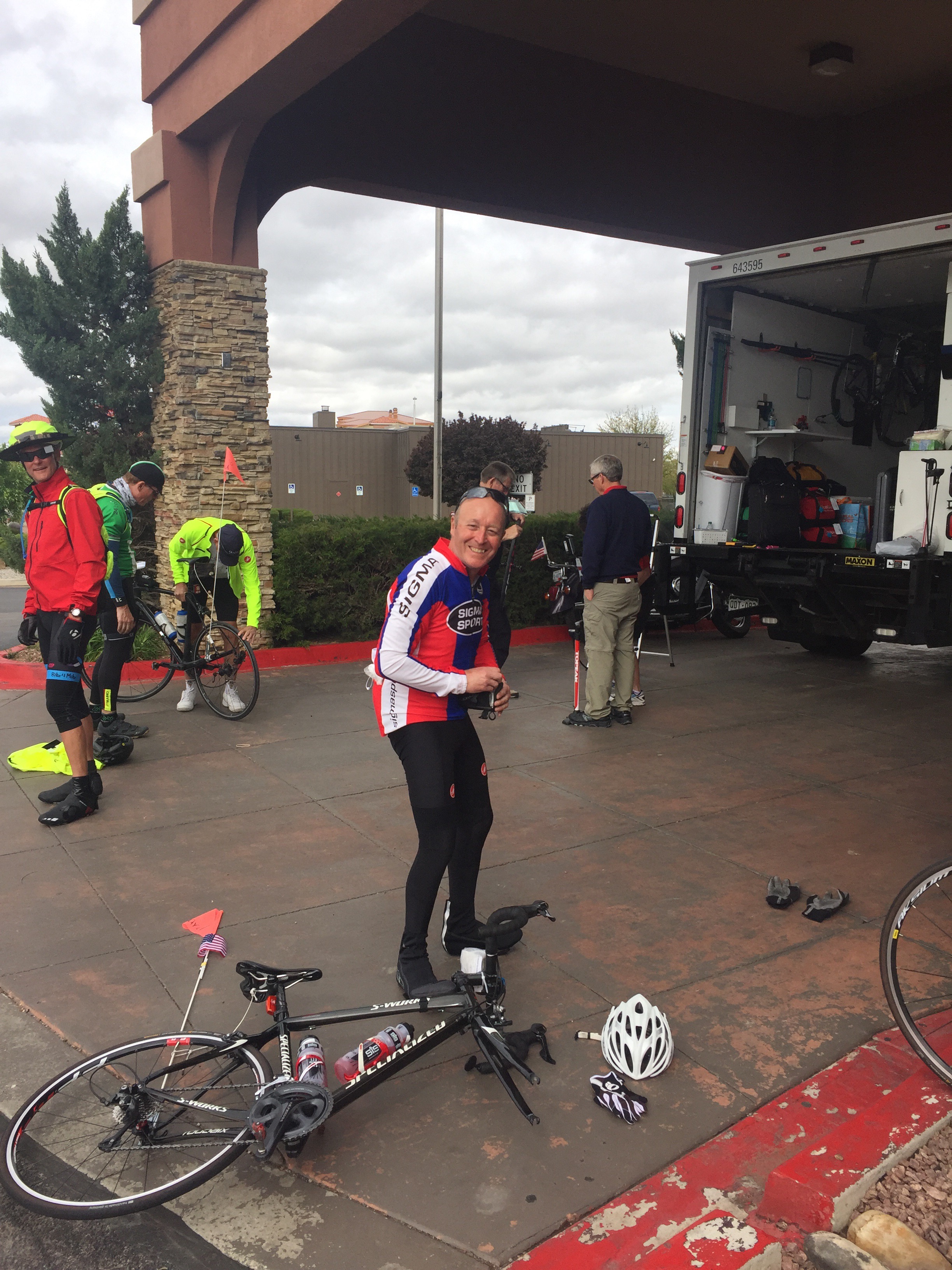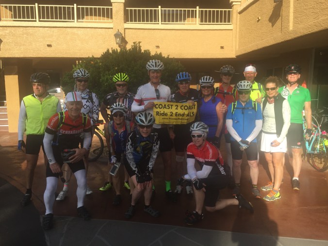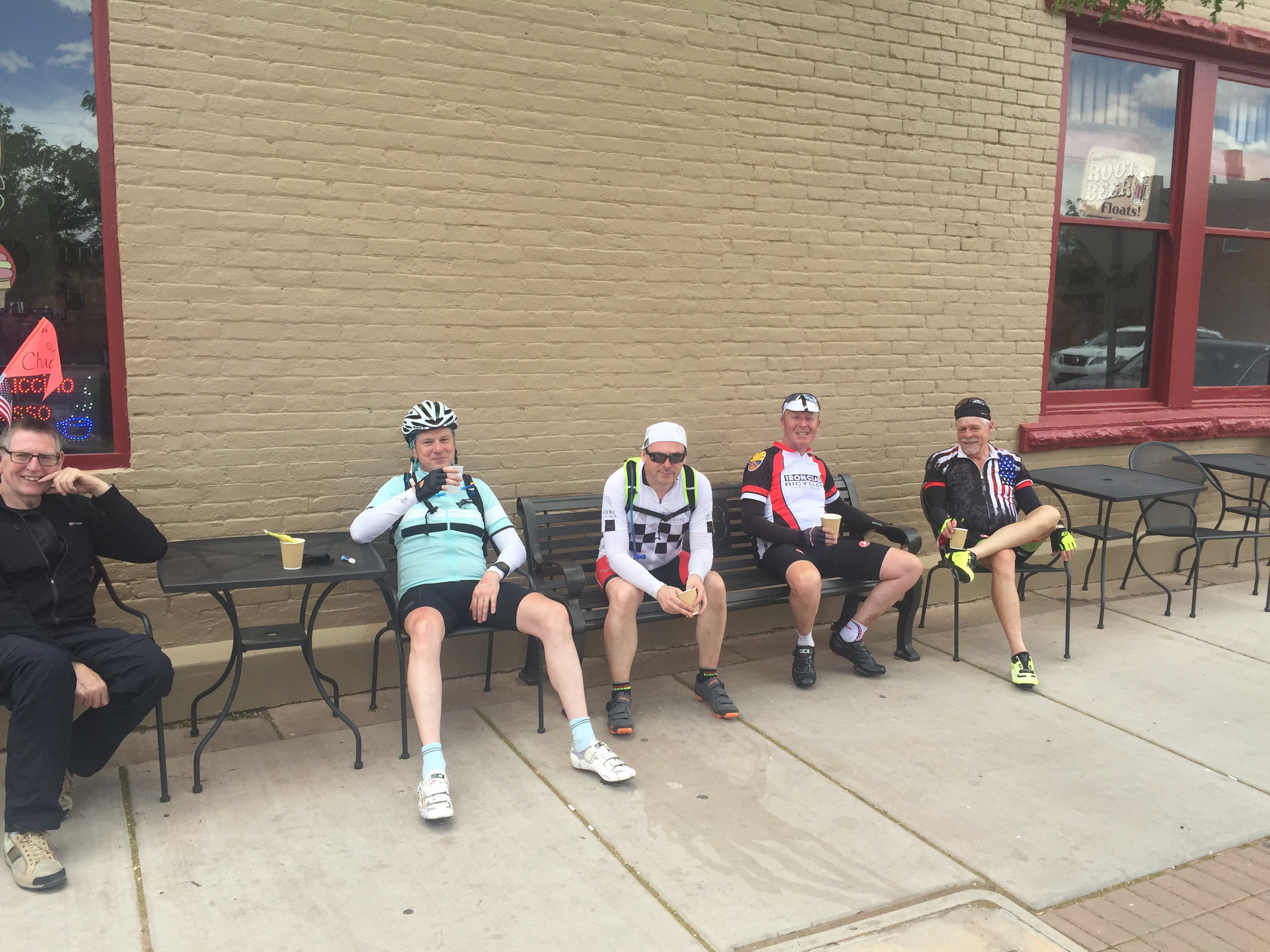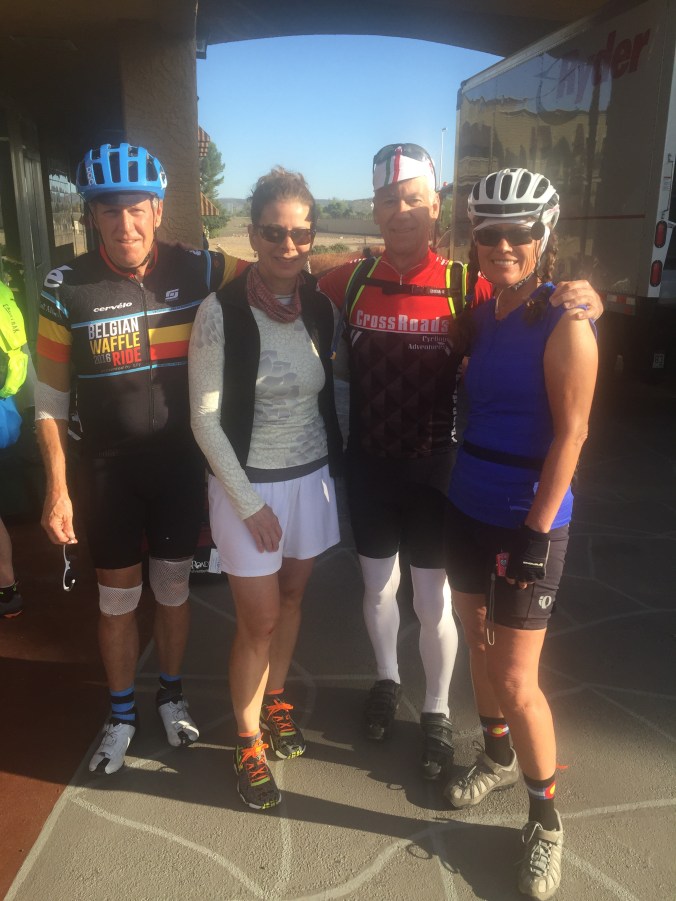 How great was today’s ride ? Well, what’s your favorite desert? No not that one, your top of the list as if no scales matter. Yeah that one, sweet decadence and beyond. That was today’s 76 miles of rolling, put the pedal down TT ( time trial ) fun. We climbed 4400 feet and stayed right around 5,000 – 7,500 feet in beautiful mountains until we descended down to the hot desert again. The quite country roads were spectacular and we all got into the hotel early. Well after one stop at the oldest DQ on the planet. Ok so there was one snag. Three of us made a wrong turn and the had to ride THE WRONG WAY on and interstate ! Wow talk about feeling like you might be the bug on the windshield! It was a short 3/4 of a mile but wow – gnarly. The entire ride was epic in all ways.