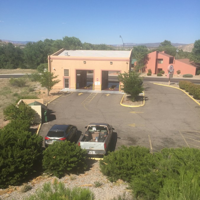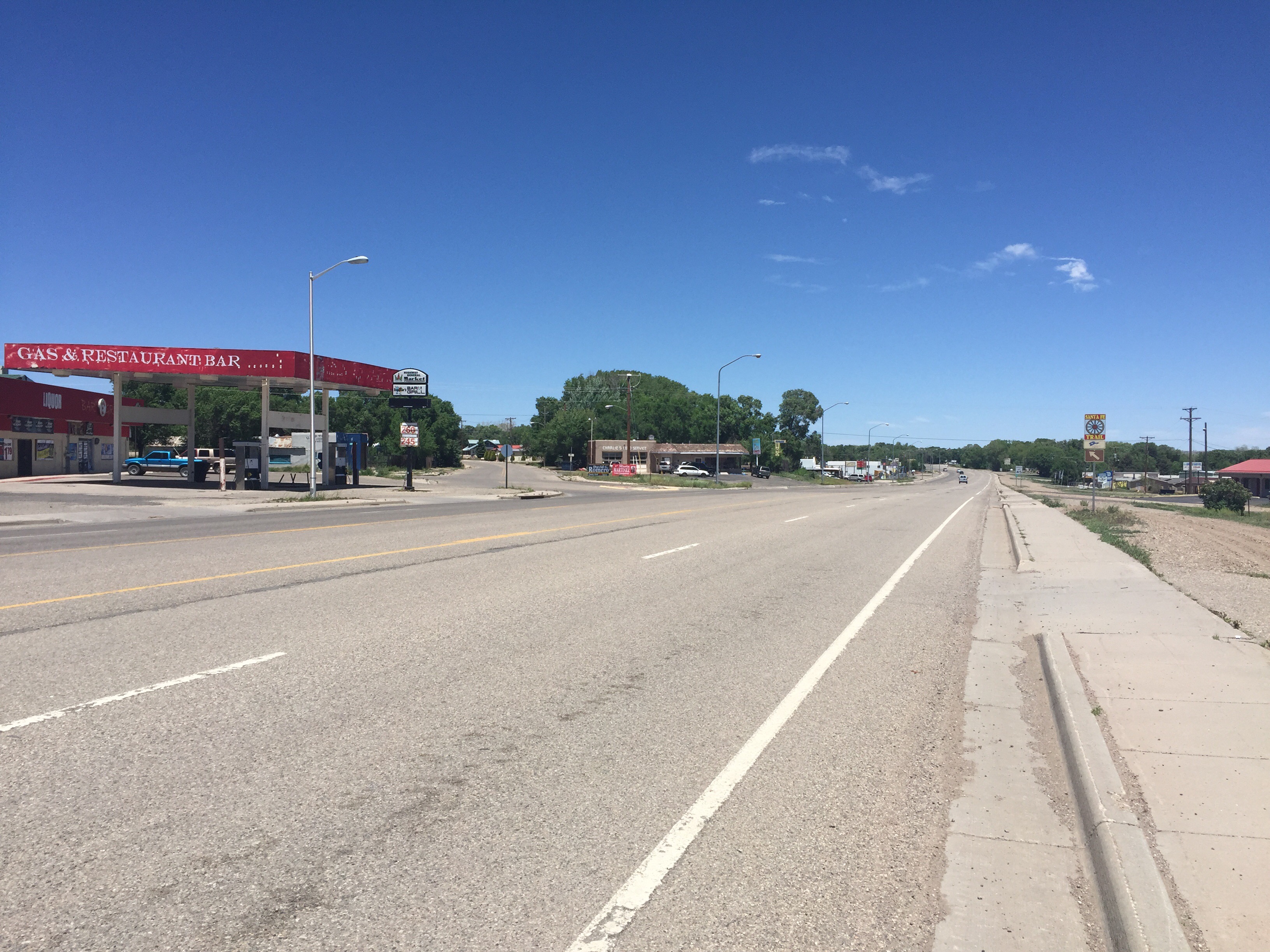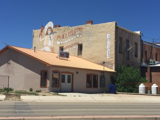 Health report update. Yep the chest demon is still camped out and hanging tight. I can’t shake this beast. At the top of every climb it’s a complete lung eruption. At each short rest stop the ground around where I’m standing straddling my bike qualifies for a Hazmat clean up. While riding I will say it’s good for some classic nose rockets. Sorry. We’ve reached our destination for the night now in Las Vegas New Mexico. Not to be confused with the other Las Vegas. The two are similar in spelling only, trust me. Las Vegas Nevada has the Luxor, this one has an old ranch with a windmill. For my young followers of geography, Brooks, Keating, Jim, and Abbey have your dads show you the two different states with a Las Vegas. Thanks Collin and Mike. Las Vegas Nevada is the “City that never sleeps”. This Las Vegas is the ” City that never woke up “.