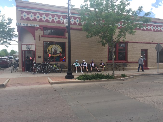 Another highlight today, we topped out at the tours highest elevation at Glorieta Pass NM at 7570′. Along the way we stopped at a small store with the worlds most amazing mini donuts. Kind of like donut holes but light and airy. In fact they were kind of like a mix of air and sugar. Your could eat a dozen without your dentures in, true mouth watering wonder balls. So if you’re ever driving thru Whereverthatwas New Mexico put on the blinker, pump the brakes and prepare for a sugar treat extravaganza. Who cares if Speedo season starts next weekend anyway.